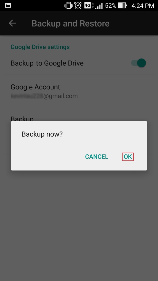 Drücken Sie auf „OK“, um die Sicherung nun durchzuführen.