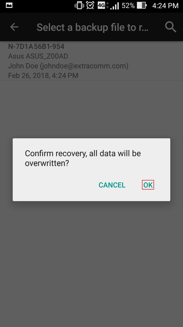 Drücken Sie auf „OK“ zum Wiederherstellen.