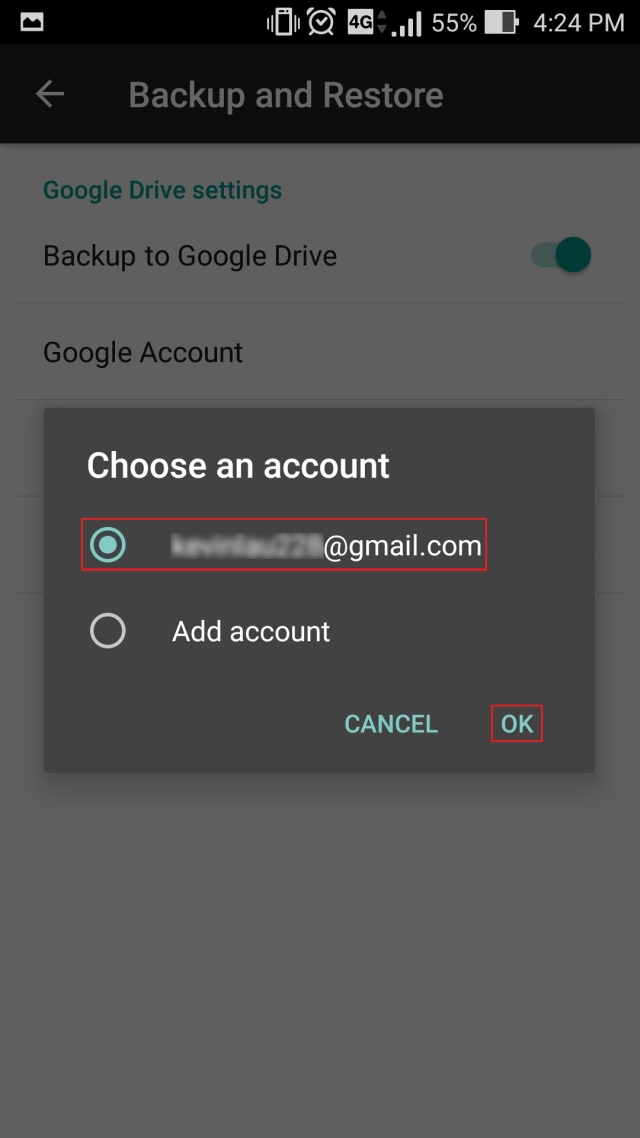 Wählen Sie Ihr Google-Konto und drücken Sie auf „OK“.