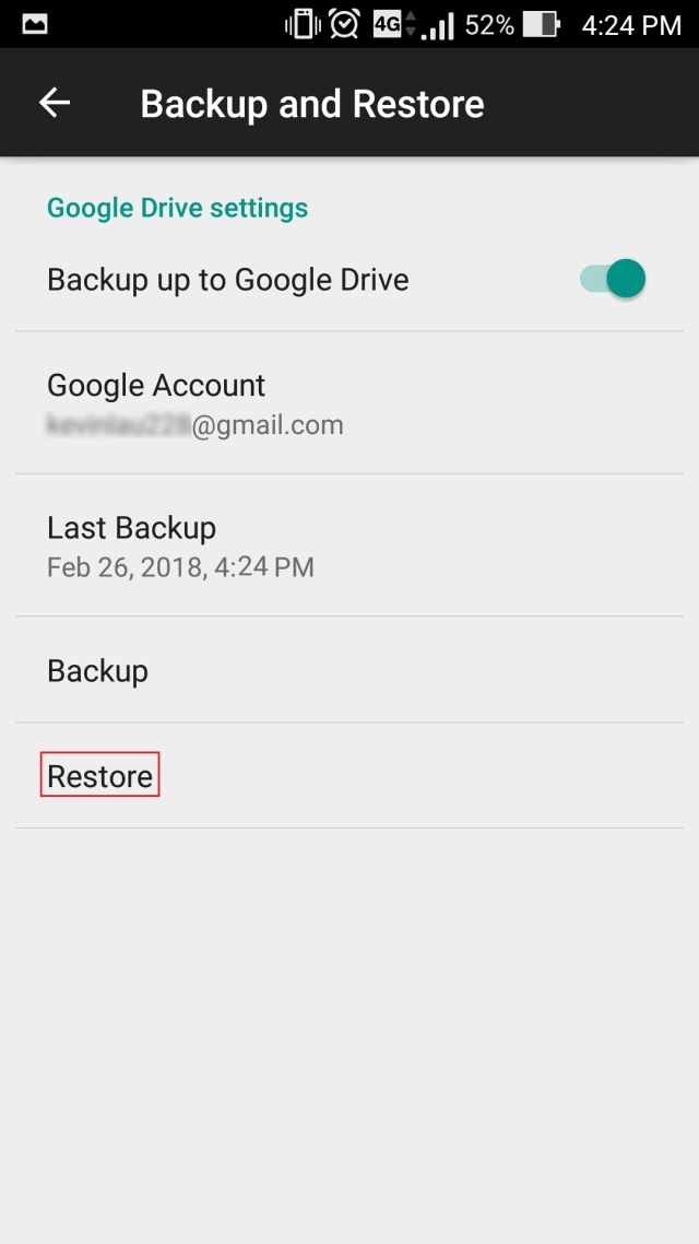 Wählen Sie auf der Seite „Sichern und Wiederherstellen“ die Option „Auf Google Drive sichern“.